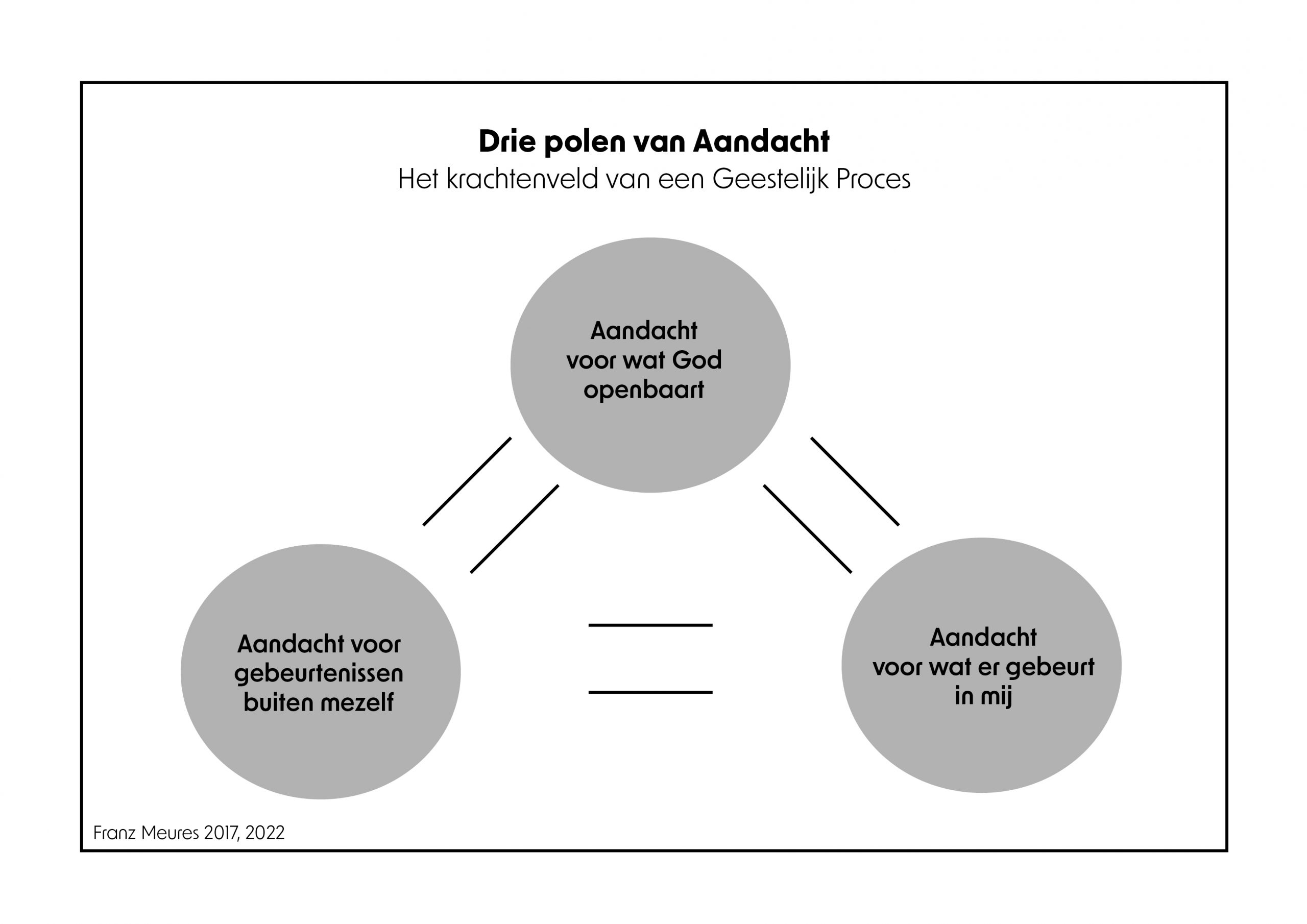 Deze drievoudige oplettendheid is in zekere mate de drijfkracht van elk geestelijk proces. In een intensief geestelijk gebeuren zijn alle drie de polen tegelijkertijd aanwezig en werkzaam. De uiterlijke werkelijkheid wordt met alle zintuigen intensief beleefd en in het verstand opgenomen. De innerlijke mens kan overwegen en oordelen. Gods openbaring werpt licht op de uiterlijke en innerlijke gebeurtenissen. In zoverre zijn de drie polen niet drie werkelijkheden, die eerst nog aan elkaar geknoopt moeten worden, maar is de drievoudige oplettendheid integendeel een geestelijk verstaan in een soort wederzijdse hermeneutiek. Ieder van de drie polen is dientengevolge zowel op zichzelf alsook in het licht van de beide andere te duiden. Hieruit komt de geestelijke stelregel “God in alle dingen zoeken en vinden” voort. Deze manier van geestelijk verstaan maakt het mogelijk om bij concrete noden op geestelijke wijze tot een beslissing te komen. Het “geestelijk komen tot beslissingen” is bovenal een weg naar verdieping van een levende verhouding tot God en daarbij helder en vrij tot een besluit komen. In de drie polen gaat het erom de wereld met de ogen van het geloof te zien, te verstaan en rekening te houden met wat ons ten diepste bezielt. Op deze wijze verlopen onze beslissingen niet alleen volgens de regels van de zakelijke logica, maar tegelijk via de geestelijke bewegingen van het hart bij het horen van Gods woord.